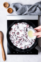 - Place the blackberries, granulated sugar, and lemon juice into a medium-sized saucepan. Stir gently to mix the ingredients together.