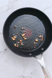 Deliciously crispy garlic is the result of less moisture and just the right amount of heat. Make sure to test the oil as step one instructs, so you know when it’s the perfect temperature to add more garlic. Also, avoid letting the oil sit for too long in the pan before you test it; this will make it way too hot and risk burning your garlic or browning it too quickly.