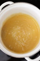 - Slowly pour in the ham drippings while whisking steadily to avoid lumps. If you do not have enough drippings, add a bit of broth or water to achieve 2 cups total liquid.