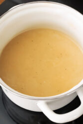 - In a small saucepan, melt the butter over medium-low heat. Gradually stir in the flour while whisking continuously. Cook for about 2 minutes until the mixture becomes smooth and lightly golden.