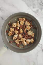 - 1 1/2 pounds boneless, skinless chicken breasts cut into cubes