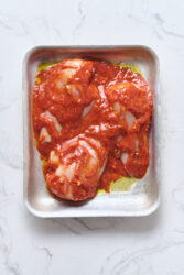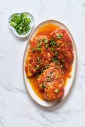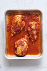 - Evenly pour the sauce over the chicken. Cover the dish with foil and bake for 20 minutes.